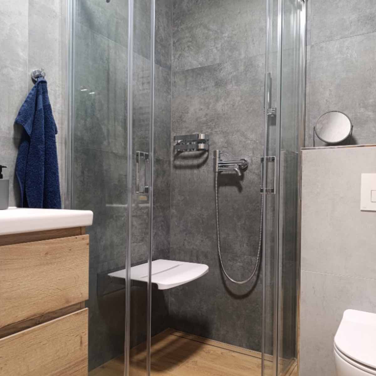 Tato realizace pro naši klientku dokazuje, že i menší koupelna může být velkorysá. Každý detail jsme navrhli s ohledem na praktičnost, aniž bychom slevili z estetiky. Kombinace tmavě šedých tónů a hřejivého dřeva vytváří moderní, harmonický celek, který neomrzí.
