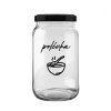 Sklenice s nápisem Polévka o objemu 0,9 litr – pro bezpečné uskladnění a krásně sladěnou kuchyň.