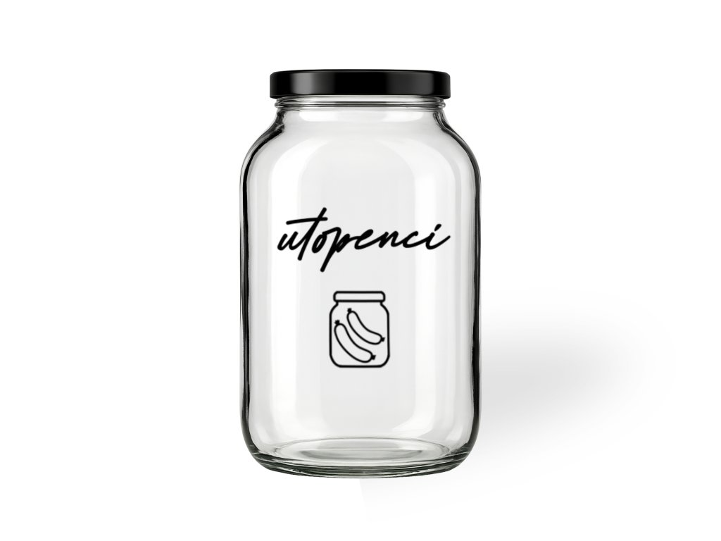 Sklenice s nápisem Utopenci o objemu 3,68 litrů – pro bezpečné uskladnění a krásně sladěnou kuchyň.