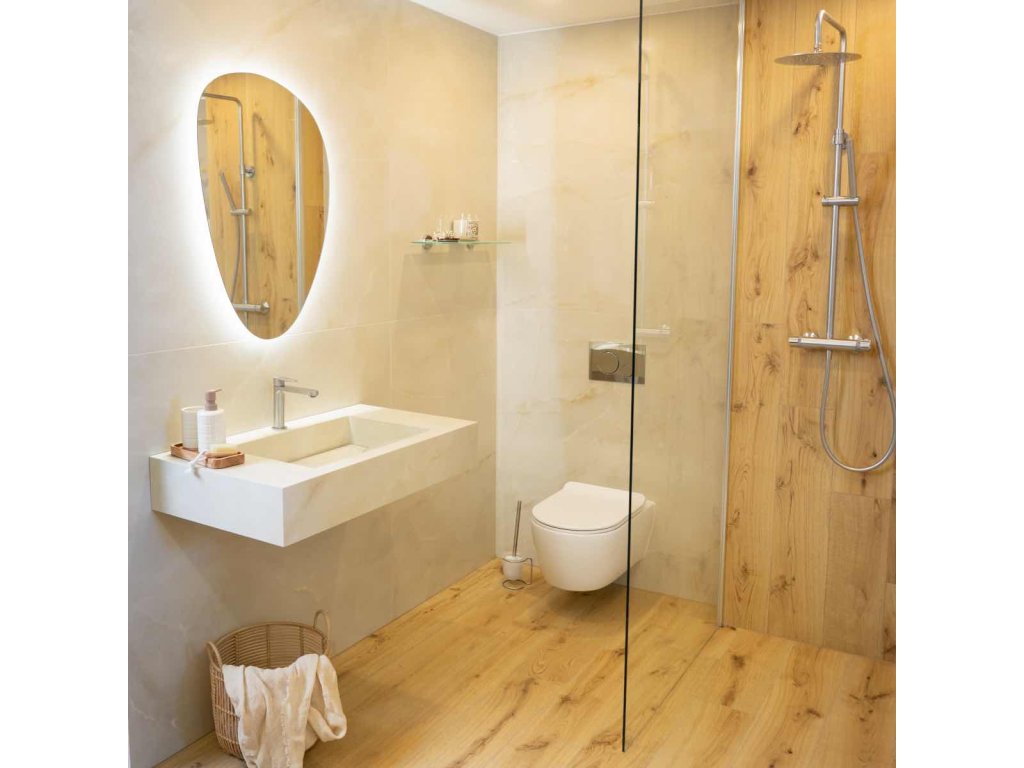 Koupelna LUMEA V kombinuje moderní design s přírodními materiály.