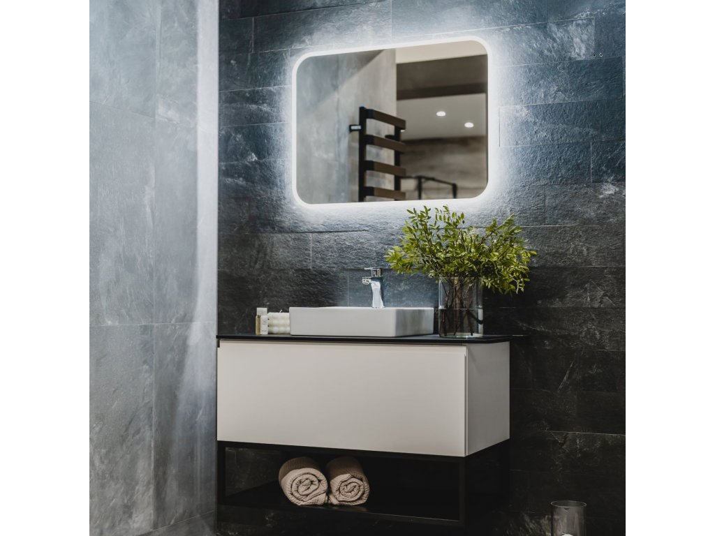 Koupelnové zrcadlo s LED páskem po celém obvodu pro rovnoměrné osvícení celého obličeje. Zrcadlo je bez zabudovaného vypínače.